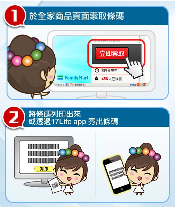 1.同樣商品一組帳號每天限索取一次,限時每組條碼限兌換一次